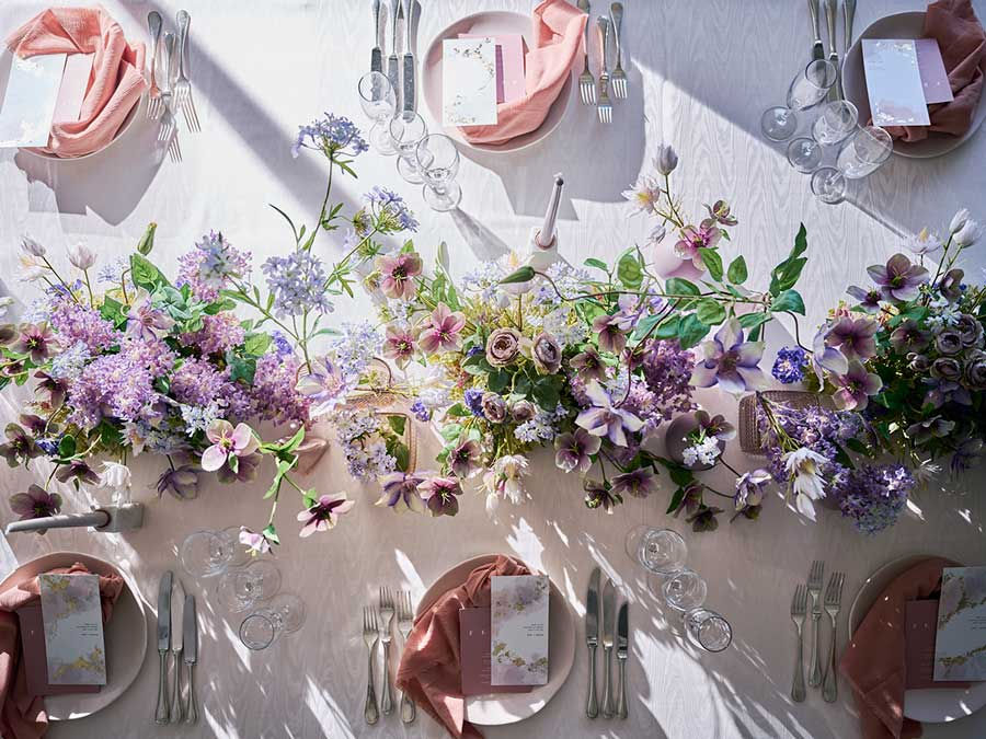 旬のデザインやカラーを、おふたりらしく美しく引き立てるスタイルとしてご提案いたします。